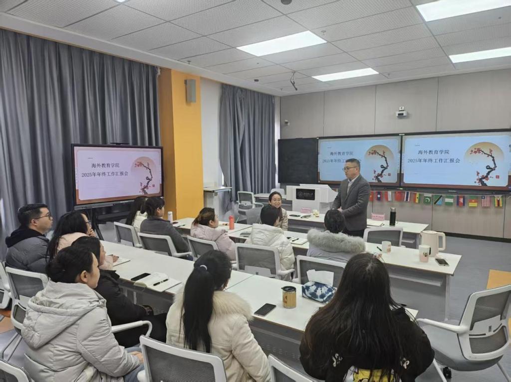 2026年1月6日,海外教育学院召开2025年度年终总结汇报会,全面回顾过去一年的工作成果,并部署新一年的工作计划。副校长潘卫东出席,与学院全体教师共同总结经验、展望未来,为2026年工作指明方向。
